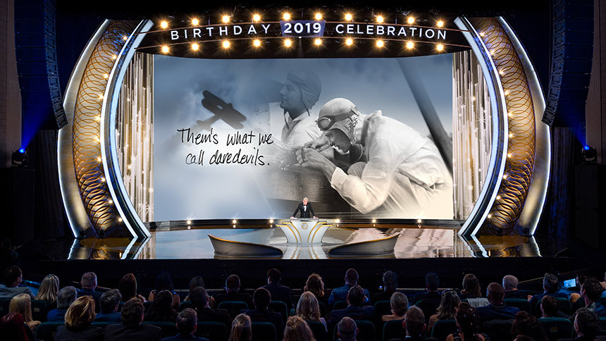 De presentatie begon 100 meter boven de maïsvelden in het Midwesten, waar een 20-jarige rondtrekkende piloot genaamd “Flash” Hubbard plaatselijke dorpsbewoners, waaronder een 9-jarige liefhebber van modelvliegtuigjes, liet zien wat het betekende om echt te vliegen. Die jongen – nu een volwassen man – herinnerde zich hoe de jonge piloot, na zijn landing in een weide, de nieuwsgierige omwonenden – de één na de ander – de kans gaf om boven de velden te glijden. Die gebeurtenis maakte zo’n indruk op de mensen van het dorpje dat ze het vijftig jaar later herdachten met een L. Ron Hubbard Dag.