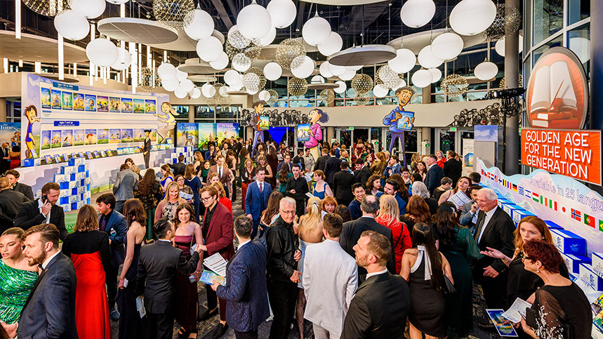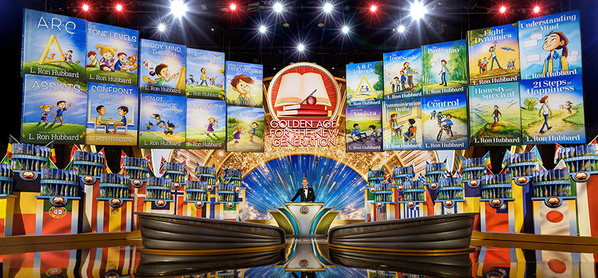 “En nu komen we bij het hoogtepunt van dit Verjaardagsevenement”, zei dhr. Miscavige. “Want vanavond markeert het begin van weer een Gouden Tijdperk.” Nadat hij de basis had gelegd voor Scientology’s Gouden Tijdperk van Kennis, Technologie en Administratie, richtte hij zich op wat er nog overbleef als de volgende stap voorwaarts. Daarmee onthulde hij iets ongekends: Scientology Boeken voor Kinderen die de basisprincipes van Scientology presenteren – volledig geïllustreerd – en die elk principe tot leven brengen voor de nieuwe generatie.