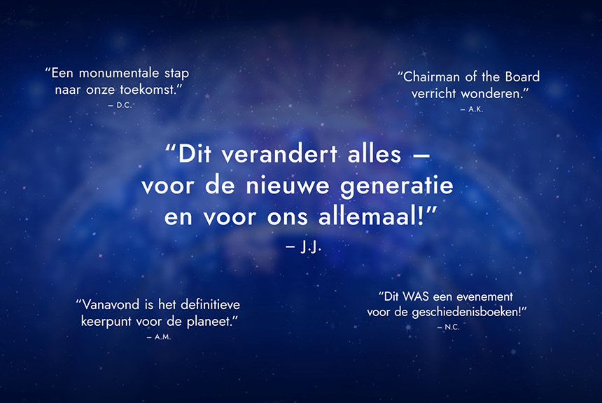 Toen, met een plotselinge stilte, bracht dhr. Miscavige de zaal tot rust – al was het maar voor een hartslag. Wat hij vervolgens introduceerde, zal voor altijd herinnerd worden als een keerpunt in de geschiedenis van Scientology, dat generaties zal vormen en een vlag zal planten voor de toekomst zelf.