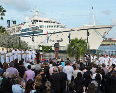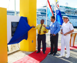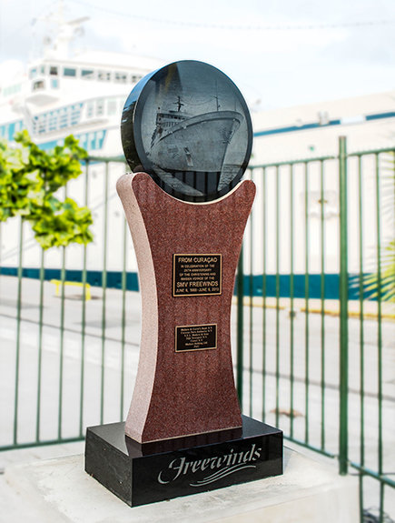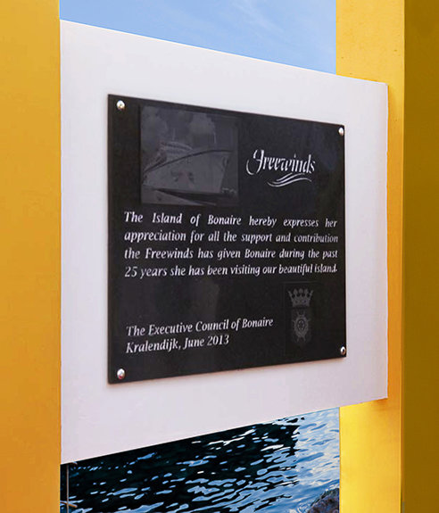 - Een monument in de haven van Willemstad in Curacao, de thuishaven van de Freewinds, onthuld door het bureau van de Premier, ter ere van de vaste ligplaats op het eiland.
