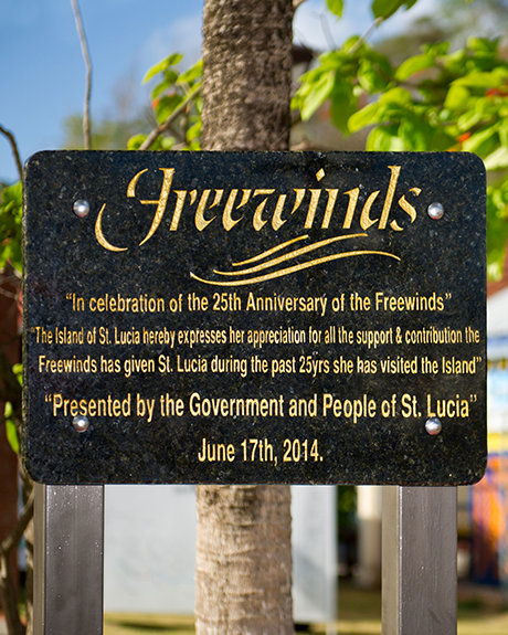 - Een monument in de haven van St. Lucia, aangeboden namens de regering en het volk voor de bijdragen van de Freewinds aan het volk.