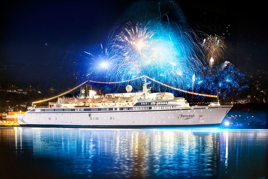 Op de avond van zaterdag 14 juni werd er vuurwerk afgestoken boven St. Kitts Bay, toen het Scientology motorvaartuig Freewinds aan haar zilveren verjaardagstocht begon.