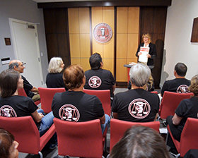 De heer Sherman besloot zijn presentatie met een boodschap: “wat je ook doet, doe als L. Ron Hubbard. Zijn bekwaamheid, vaardigheid en vakkundigheid zijn voldoende om een emotionele impact te creëren – evenaar die. Verspreid op die manier zijn mededogen en vriendelijkheid naar de levens die ook jij zult tegenkomen.”