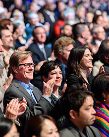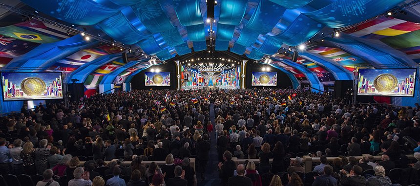 Gemeenteleden en hun gasten vulden het Shrine Auditorium in Los Angeles om eer te betuigen aan de niet eerder vertoonde groei van 2015 en het momentum dat het toneel inluidt voor 2016 en later.