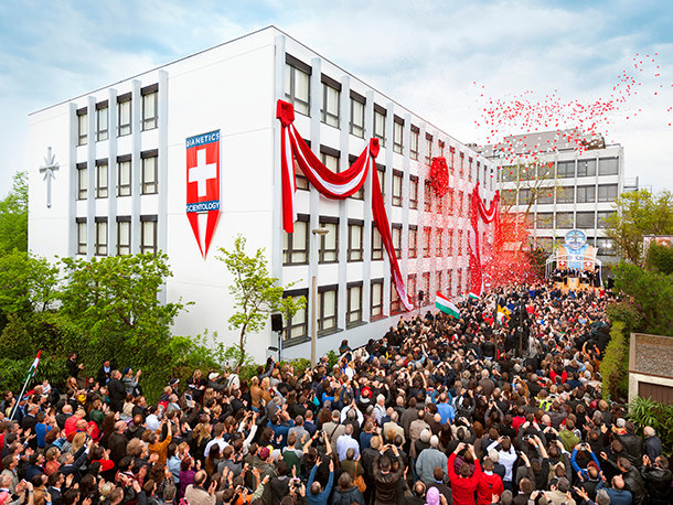 De opening op 25 april van de eerste Ideale Scientology Organisatie in Bazel, Zwitserland, waar Zwitserland, Frankrijk en Duitsland samenkomen.