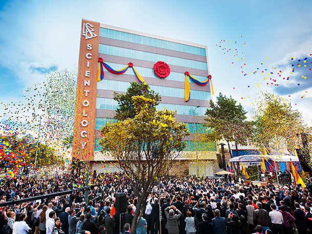 De opening op 5 juli van de indrukwekkende Ideale Kerk van Scientology in Bogotá, Colombia.