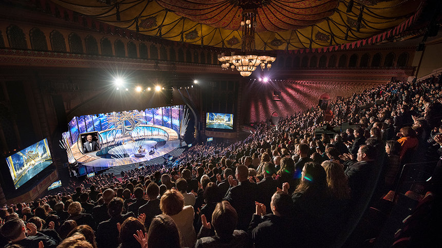 Duizenden aanwezigen herdachten twaalf maanden van inspirerende prestaties bij een Nieuwjaarsvieringsgala in het legendarische Shrine Auditorium in Los Angeles, waarin 2015 als punt van een periode van historische groei van de religie werd neergezet.