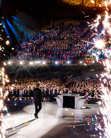 Toen, terwijl een daverend applaus door het Shrine Auditorium rolde, waarin alle stoelen bezet waren, steeg de nieuwjaarsviering naar een crescendo. Terwijl de laatste momenten van het meest gedenkwaardige decennium van de Kerk dichterbij kwamen, liet dhr. Miscavige iedereen achter met een laatste woord: