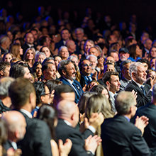 Het publiek blijft staan, terwijl gejuich tijdens de ene na de andere prestatie door de zaal galmt.