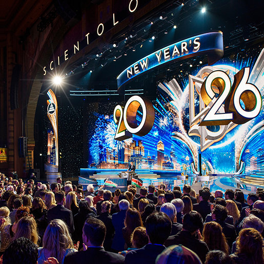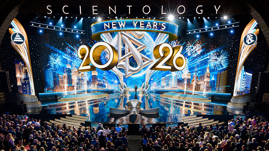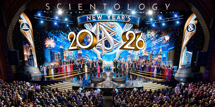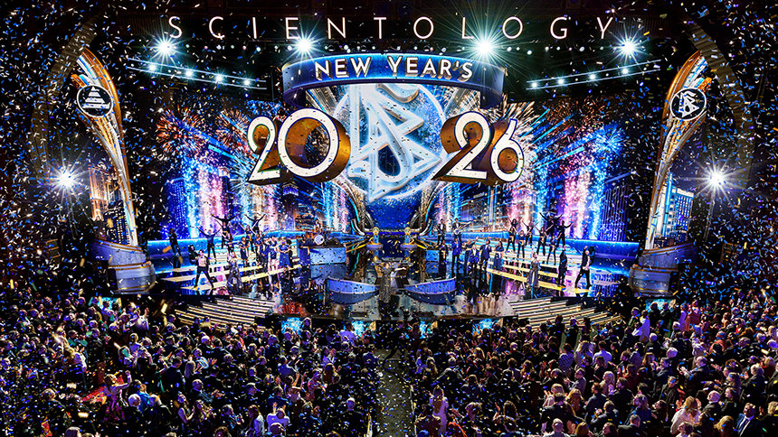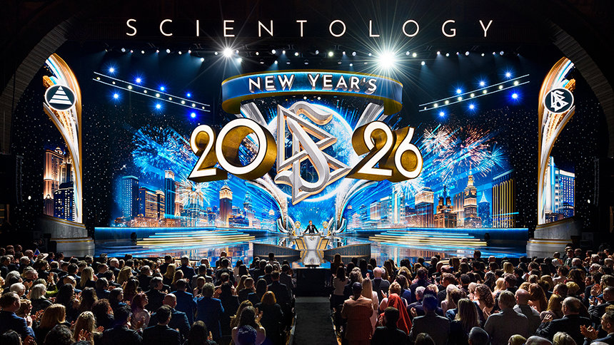 “Voor het grootste deel van de wereld is Nieuwjaar iets waar ze op wachten. Ze tellen seconden af, kijken naar de klok, alsof het tijd is die hen vertelt wanneer het leven weer begint”, zei meneer David Miscavige, kerkelijk leider van de Scientology religie. “Maar wij hebben tijd nooit zo geleefd. Dus, terwijl de rest van de planeet zijn klokken misschien langzamer laat lopen, zijn wij hier voor iets totaal anders: om te zien wat er gebeurt wanneer een heel jaar aan Scientology prestaties allemaal tegelijk worden losgelaten.”