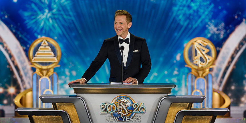 De avond kent een hoogtepunt wanneer meneer David Miscavige, de kerkelijk leider van de Scientology religie, in de schijnwerpers stapt en de Nieuwjaarsviering 2026 bulderend tot leven komt.
