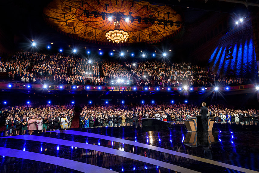 Vanaf het begin droeg de avond de kenmerken van een Scientology Nieuwjaarsviering – elegantie, opgewonden verwachting en het besef van een doel. Meer dan 6500 gasten, gekleed in formele avondkleding, vulden de historische zaal om de gedenkwaardige successen van 2025 te vieren, hun blik gericht op een grenzeloze horizon die zich voor hen ontvouwde.