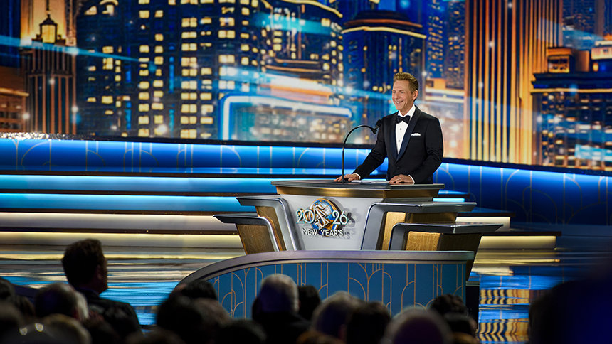 Terwijl de laatste noten door het Shrine Auditorium weerklinken, vult de lucht zich met stralend licht en levendige kleuren, die het begin van een buitengewoon 2026 aankondigen!