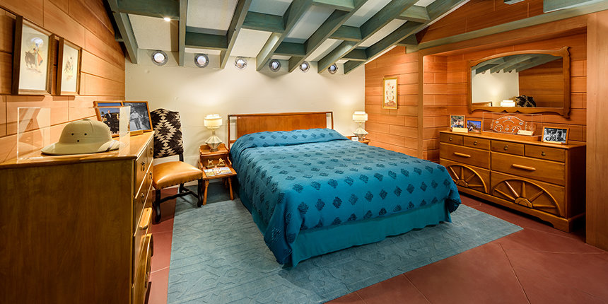 Er zijn ook persoonlijke voorwerpen te zien, zoals het Hammond S4 Akkoordorgel waar meneer Hubbard graag op speelde en zijn Coronado Stereomeubel dat de lucht vulde met walsen en jazz. Buiten staan zelfs de gletsjerblauwe Harley-Davidson Hydra-Glide en zijn Chevrolet Deluxe Station Wagon uit 1951 die in hun volledige vintageglorie werden hersteld.