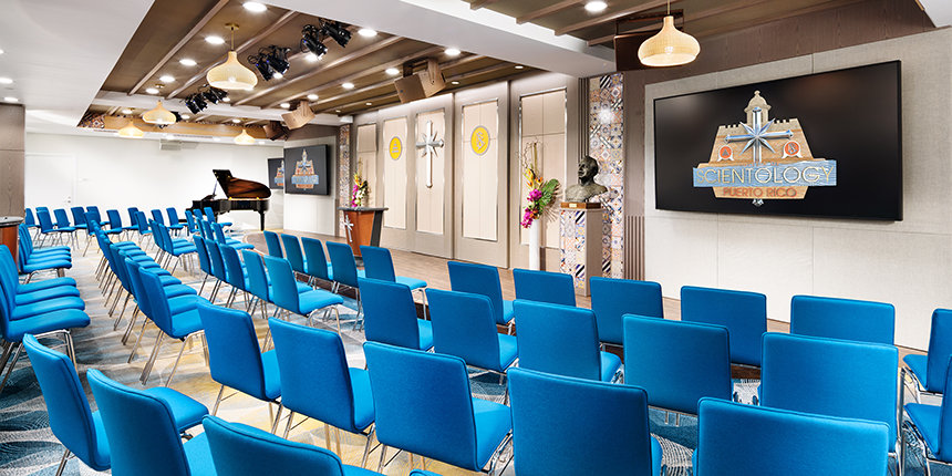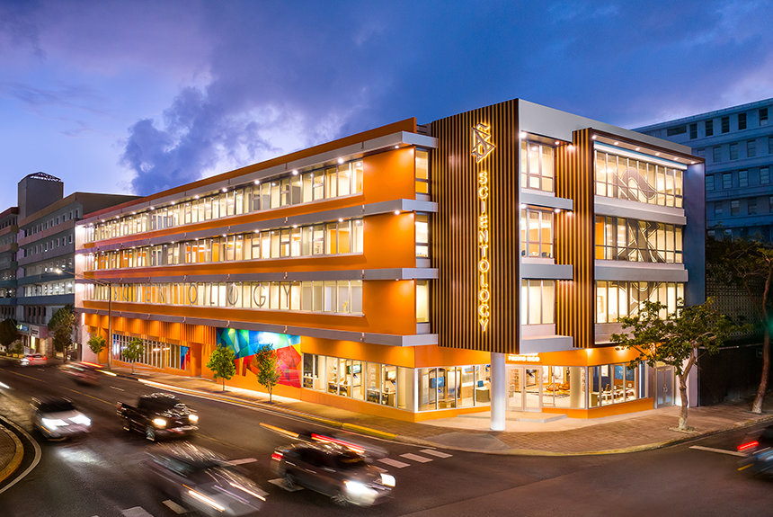 “Wie kan de aantrekkingskracht van deze wateren die je Eiland van Betovering omringen, ontkennen”, zei meneer David Miscavige, kerkelijk leider van de Scientology religie. “Een eiland dat op zijn eigen ritme beweegt, een eiland dat zijn eigen stroom opwekt – want de ware kracht van Porto Rico zijn zijn mensen. En net als je geliefde coquí-kikker ben je onmiskenbaar, ben je onoverwinnelijk, ben je onmogelijk het zwijgen op te leggen. En hier staat het levende bewijs: je nieuwe Ideale Scientology Kerk van Porto Rico!”